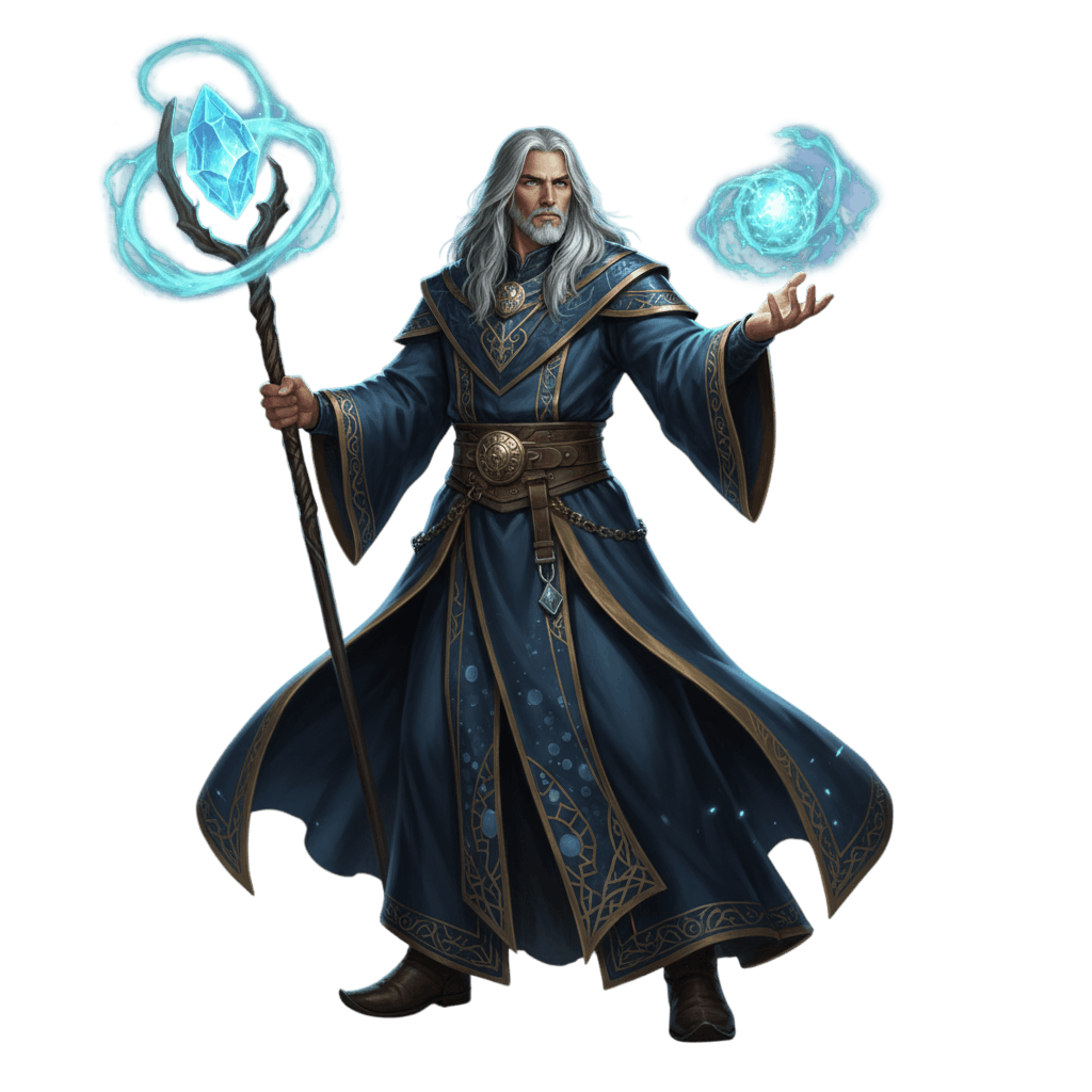 Masters of arcane knowledge, Wizards wield destructive magic drawn from Eldoria’s ancient Echoes. They command fire, frost, and raw energy to devastate enemies from afar, trading physical strength for unmatched magical power.